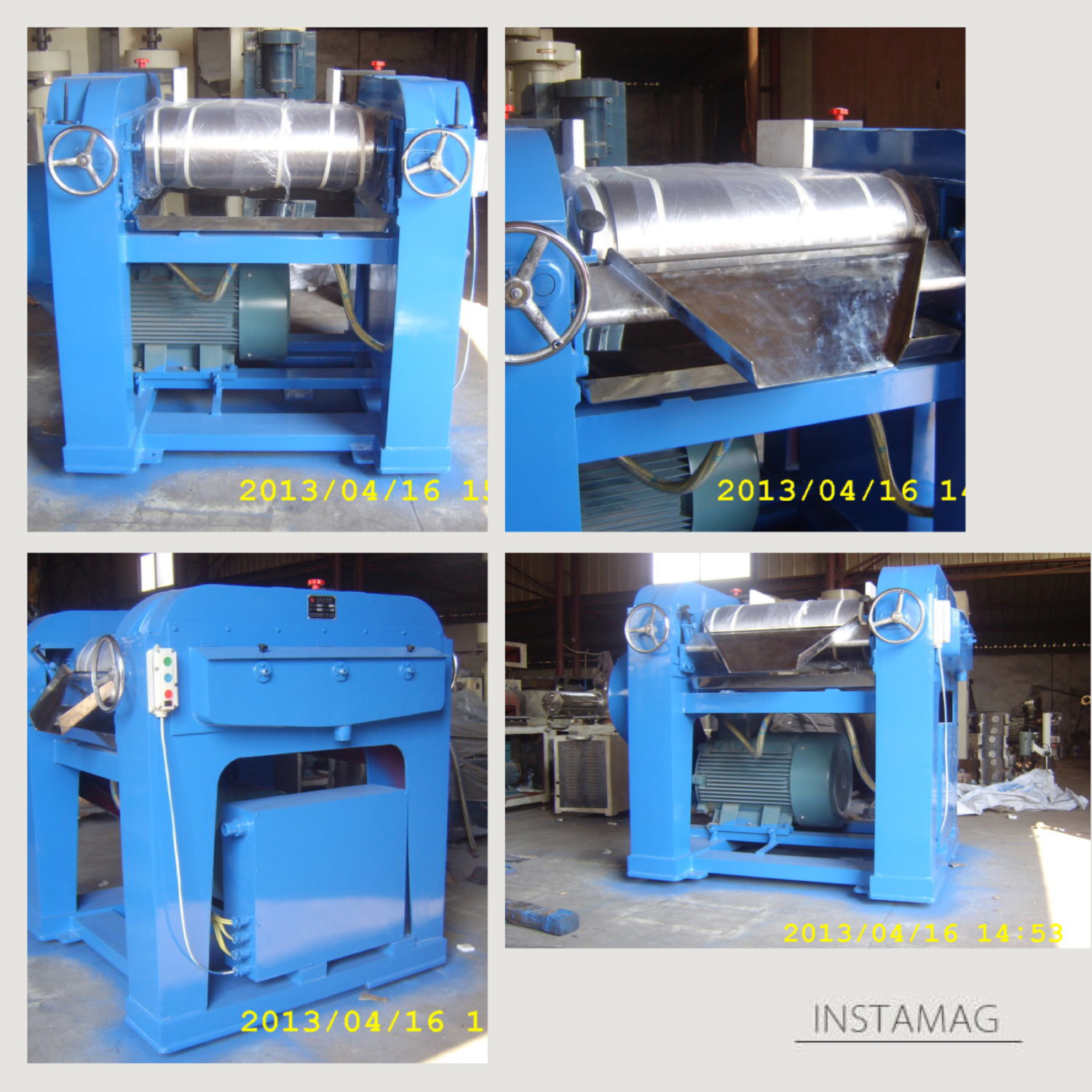 三輥研磨機適用于細(xì)度要求較高的膏體或高粘度物料使用。該機通過水平的三根輥筒的表面相互擠壓,手動式調(diào)節(jié)輥筒之間的間距,以不同速度的摩擦達(dá)到研磨效果??裳b有緊急制動按鈕,防止落入異物導(dǎo)致的設(shè)備損壞。輥子使用特殊硬質(zhì)合金澆鑄而成;也可以使用大理石材質(zhì)。傳動采用鏈條傳動、齒輪調(diào)輥。